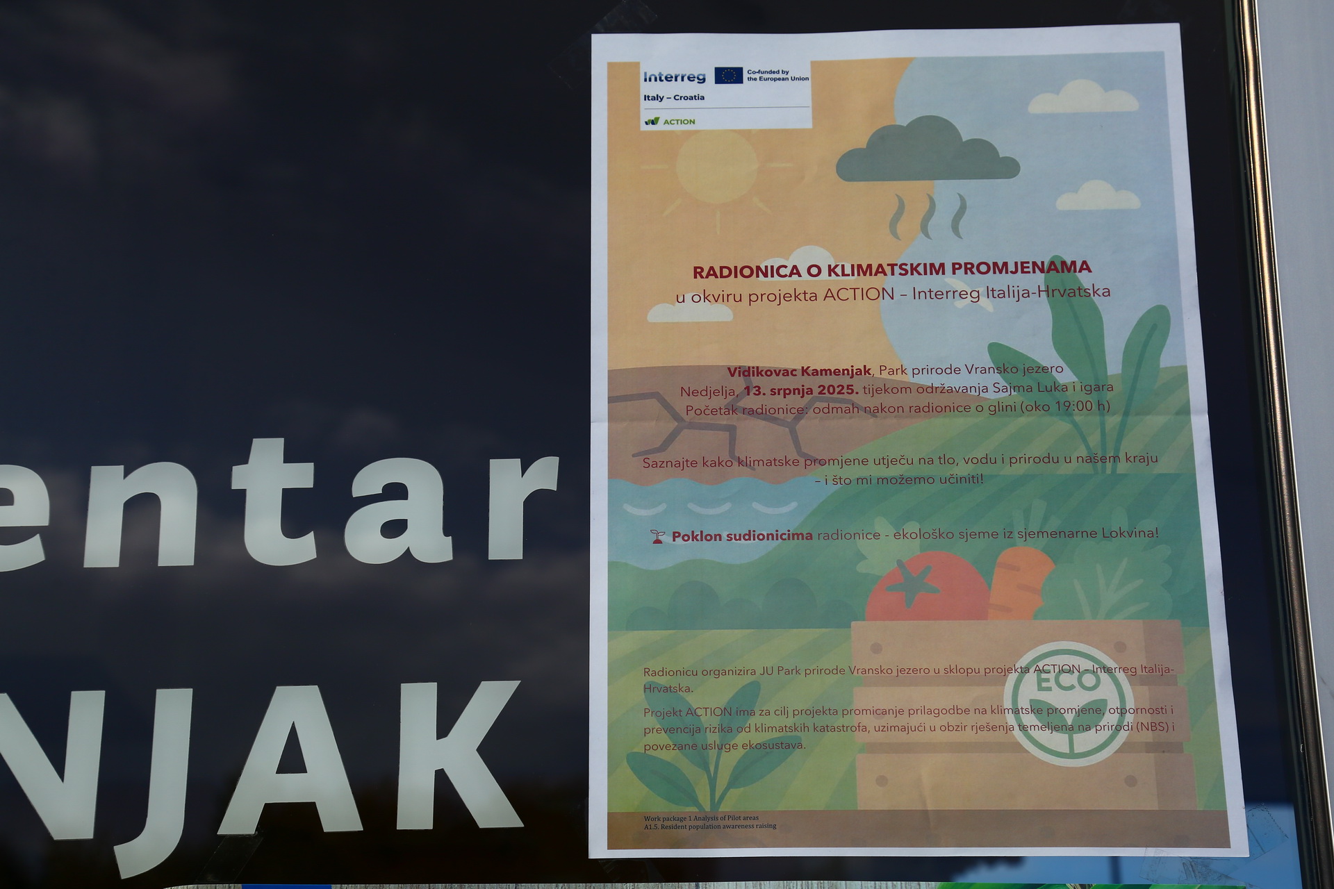 U nedjelju, 13. srpnja 2025., u sklopu tradicionalnog Sajma Luka i igara na Vidikovcu Kamenjak, održana je radionica o klimatskim promjenama u organizaciji Javne ustanove Park prirode Vransko jezero, kao dio aktivnosti projekta ACTION – Interreg Italija-Hrvatska.